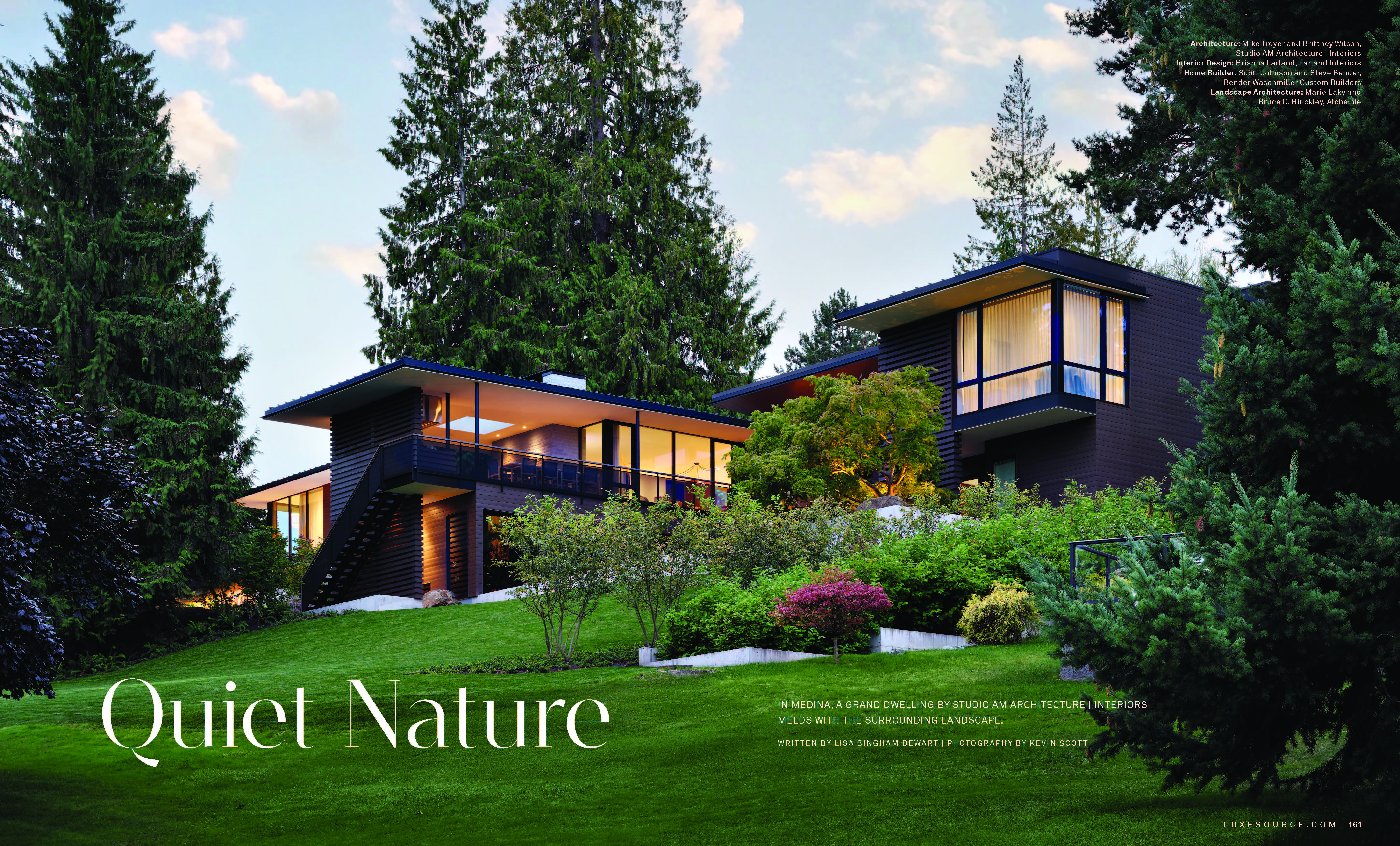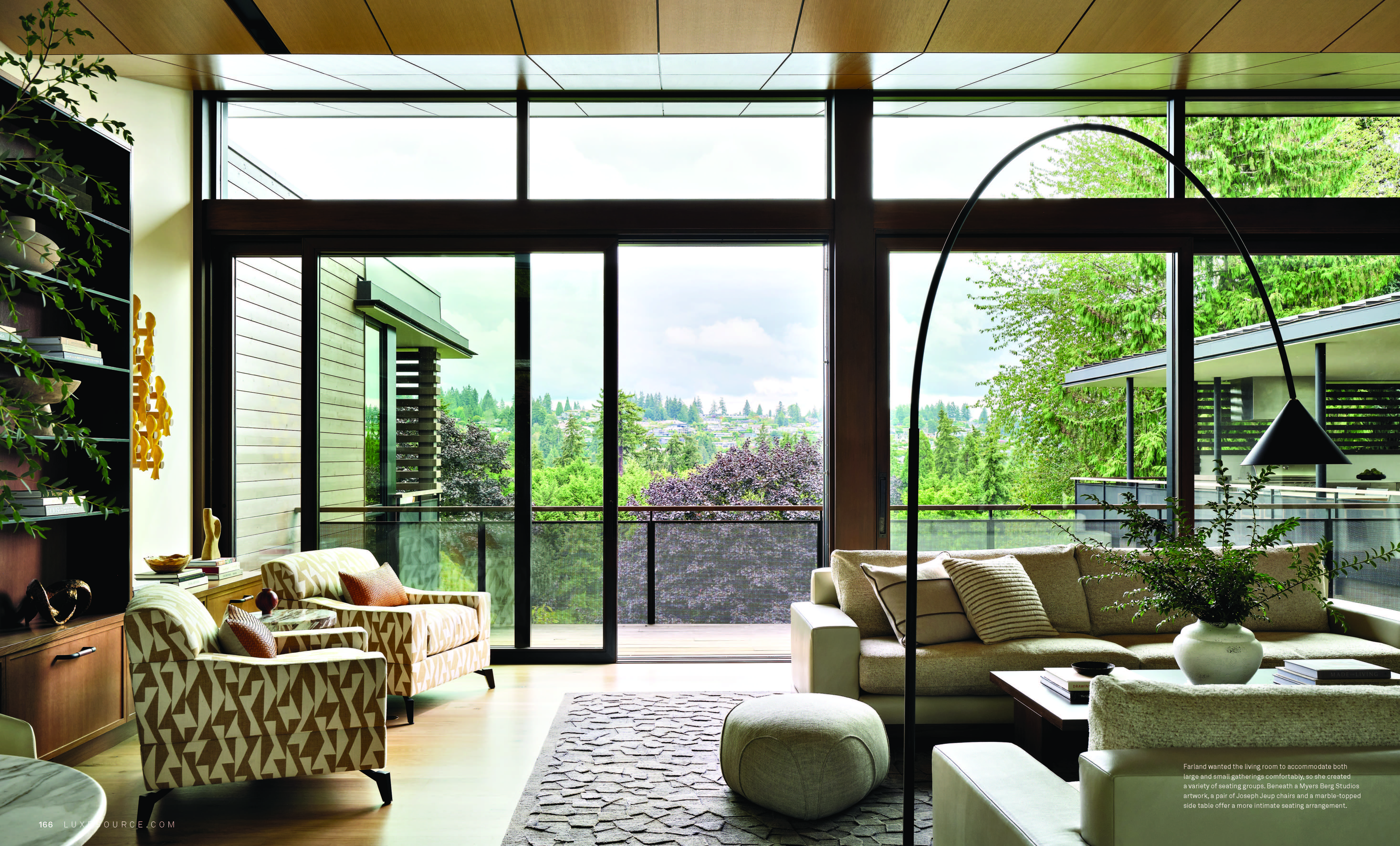 Previous page: Cedar and bronze-colored aluminum accents help a Medina home by Mike Troyer recede into its surroundings. Windows by Loewen Windows capture the views.