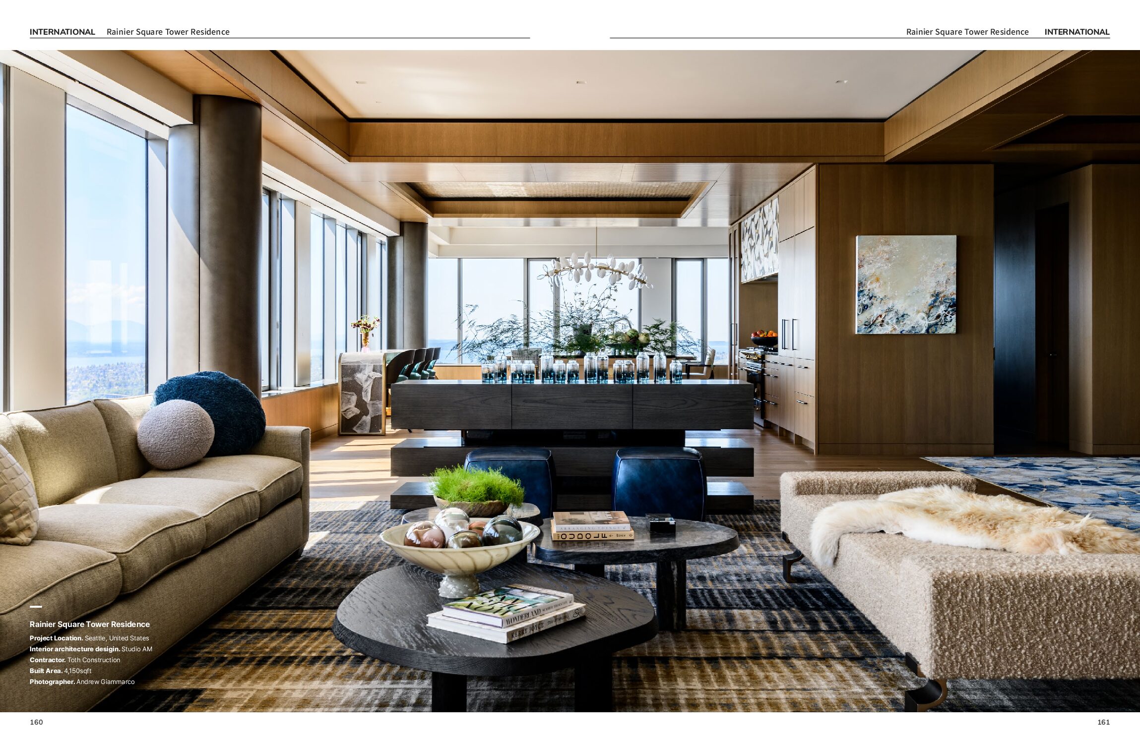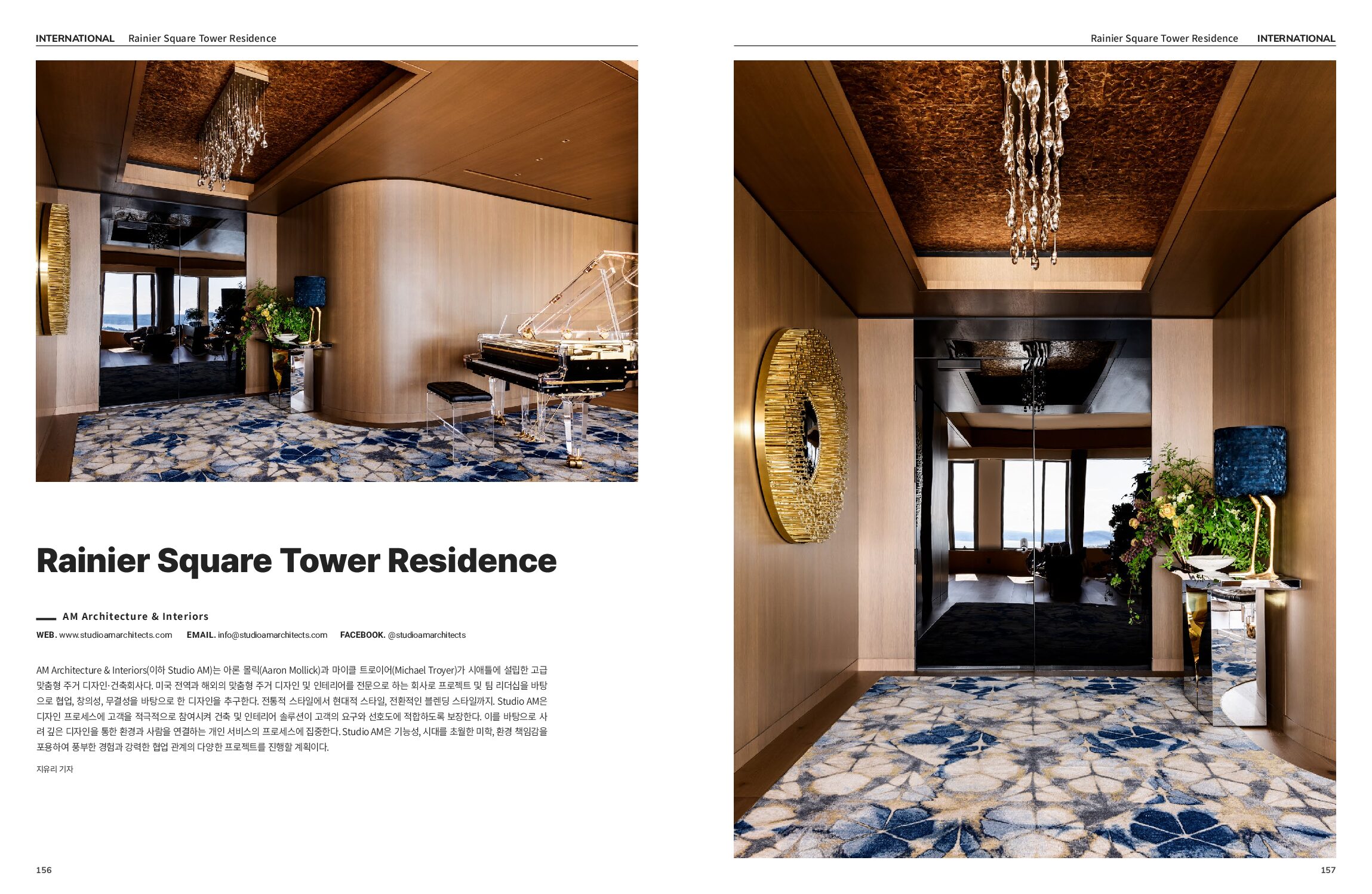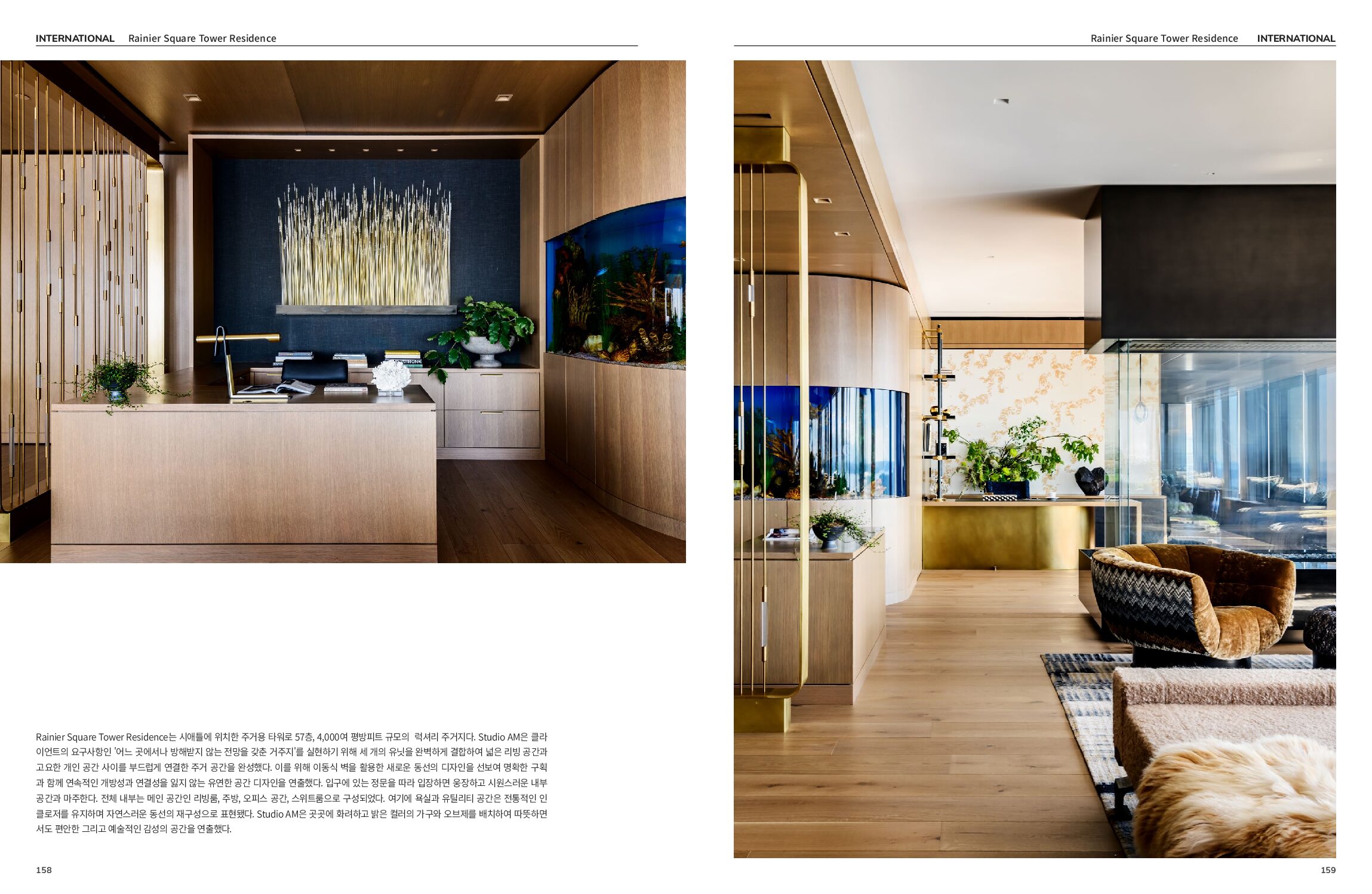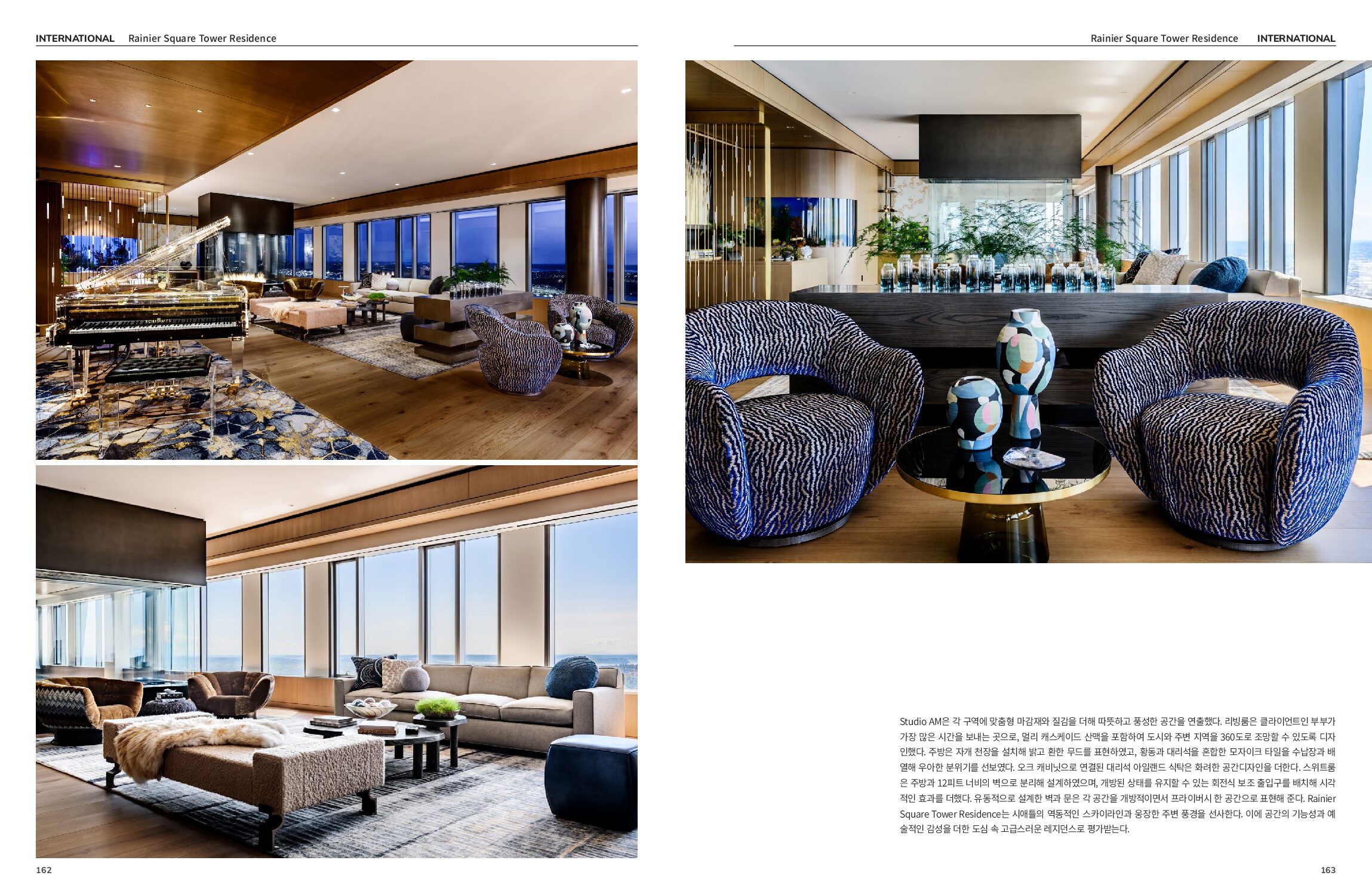 Rainier Square Tower Residence is a 57-story, 4,000-square-foot luxury residential tower located in Seattle. To fulfill the client’s request for “a residence with unobstructed views from every angle,” Studio AM seamlessly combined three units to create a living space that seamlessly connects spacious living spaces with tranquil private spaces. To achieve this, the studio introduced a new circulation design utilizing movable walls, creating a flexible space that maintains openness and connectivity while maintaining clear divisions. Entering through the main entrance, the home is greeted by a grand and airy interior. The overall interior consists of the main living room, kitchen, office, and suite. The bathroom and utility areas retain their traditional enclosures, seamlessly reconfiguring the flow of flow. Studio AM incorporated vibrant and bright furniture and objects throughout to create a warm, comfortable, and artistic space.